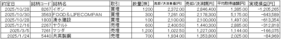 チャレンジもあってプラス要因ができるのも事実なんだけど、特にイオン、スシロー、清水建設の失敗は痛い。清水建設は1000株か(表の行をまとめた時に間違ってる)