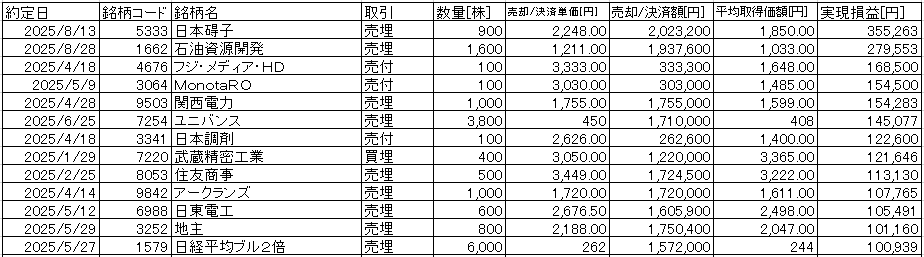 チャレンジもあってプラス要因ができるのも事実なんだけど、特にイオン、スシロー、清水建設の失敗は痛い。清水建設は1000株か(表の行をまとめた時に間違ってる)